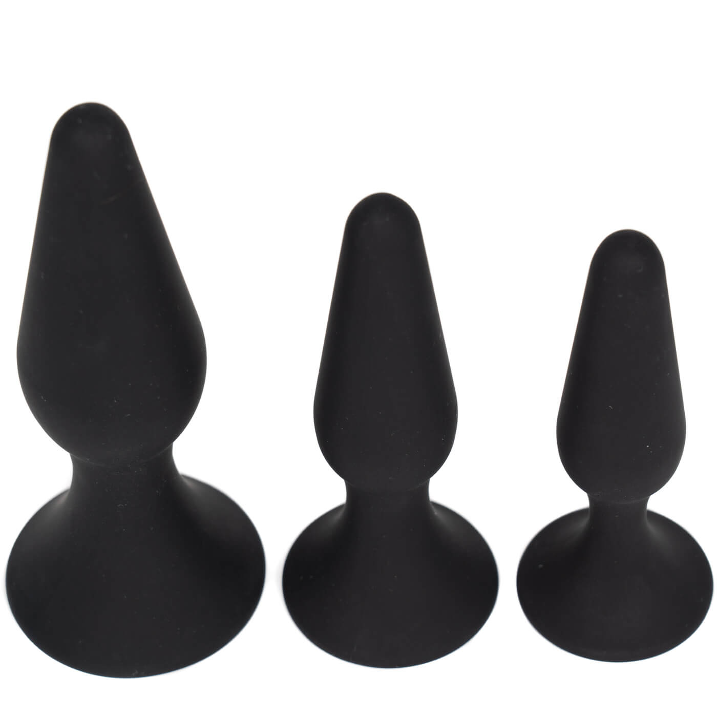 - Set of 3 non-vibrating silicone butt plugs in 3 various sizes