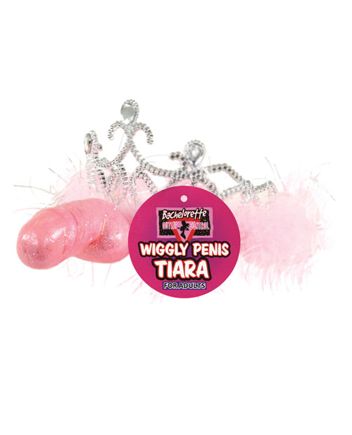 Be the princess of the penis! The Wiggly Penis Tiara is made of plastic and has a pink glittery pecker. The tiara is adorned with tiny pink feathers and silver tinsel.