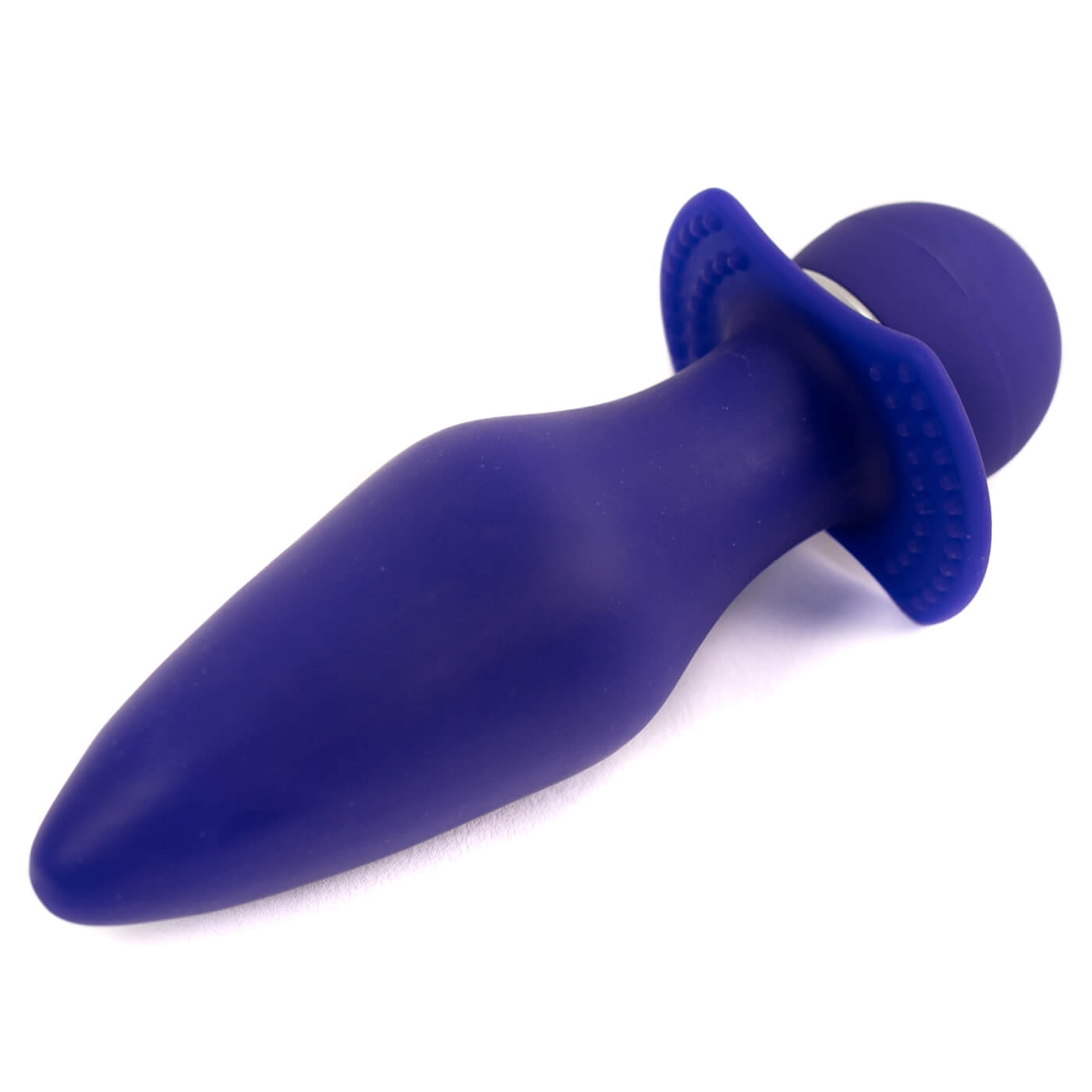 A gently widening, curvaceous body follows the head down to a thin neck - the nice wide, subtly textured flange below stimulates the perineum and outer anal area while protecting against too-deep penetration.