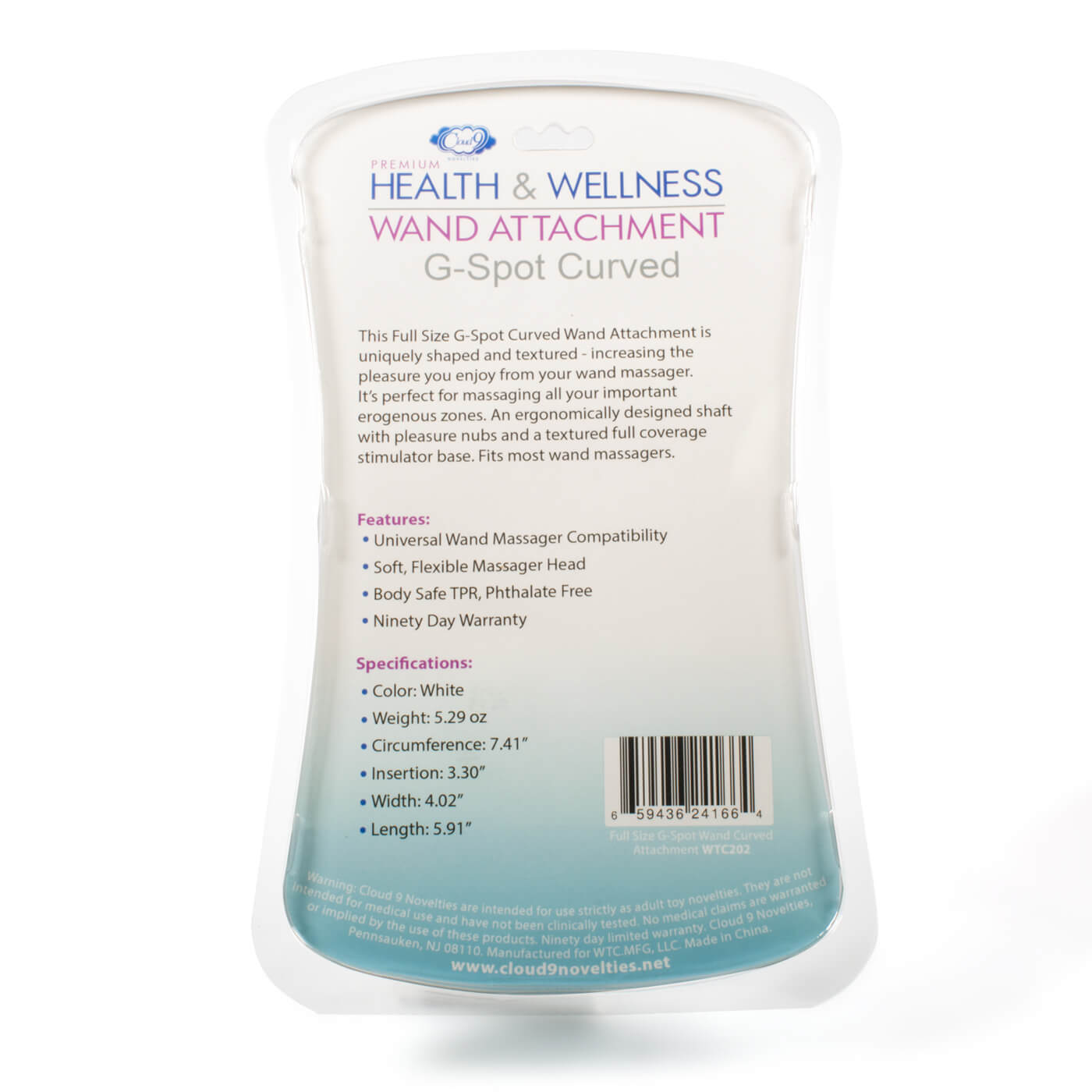 Cloud 9 Novelties Full Size Curved Wand Attachment. The Full Size Curved Wand Attachment creates a strong, smooth extension for your wand massager. Just slide the sleeve over the top of your personal power wand and feel the vibrations amplify with the smooth ergonomic curve. Fits most wand massagers. Features universal wand massager compatibility. Strong, smooth massager head extension. Body safe PVC Plastic phthalate free. Please note shown on body wand massager, not included. Sold separately. Warning Cloud 9 Novelties are intended for use strictly as adult toy novelties. They are not intended for medical use and have not been clinically tested. No medical claims are warranted or implied by the use of these products.