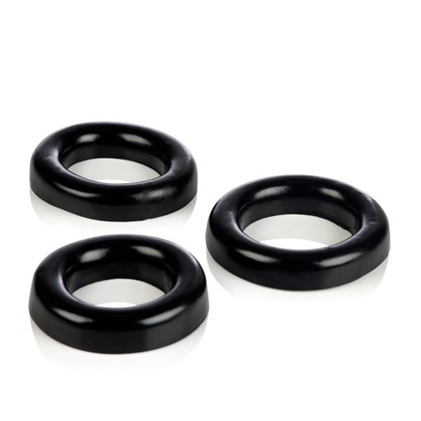 Soft pliable cock rings in three convenient sizes. Simple and effective.