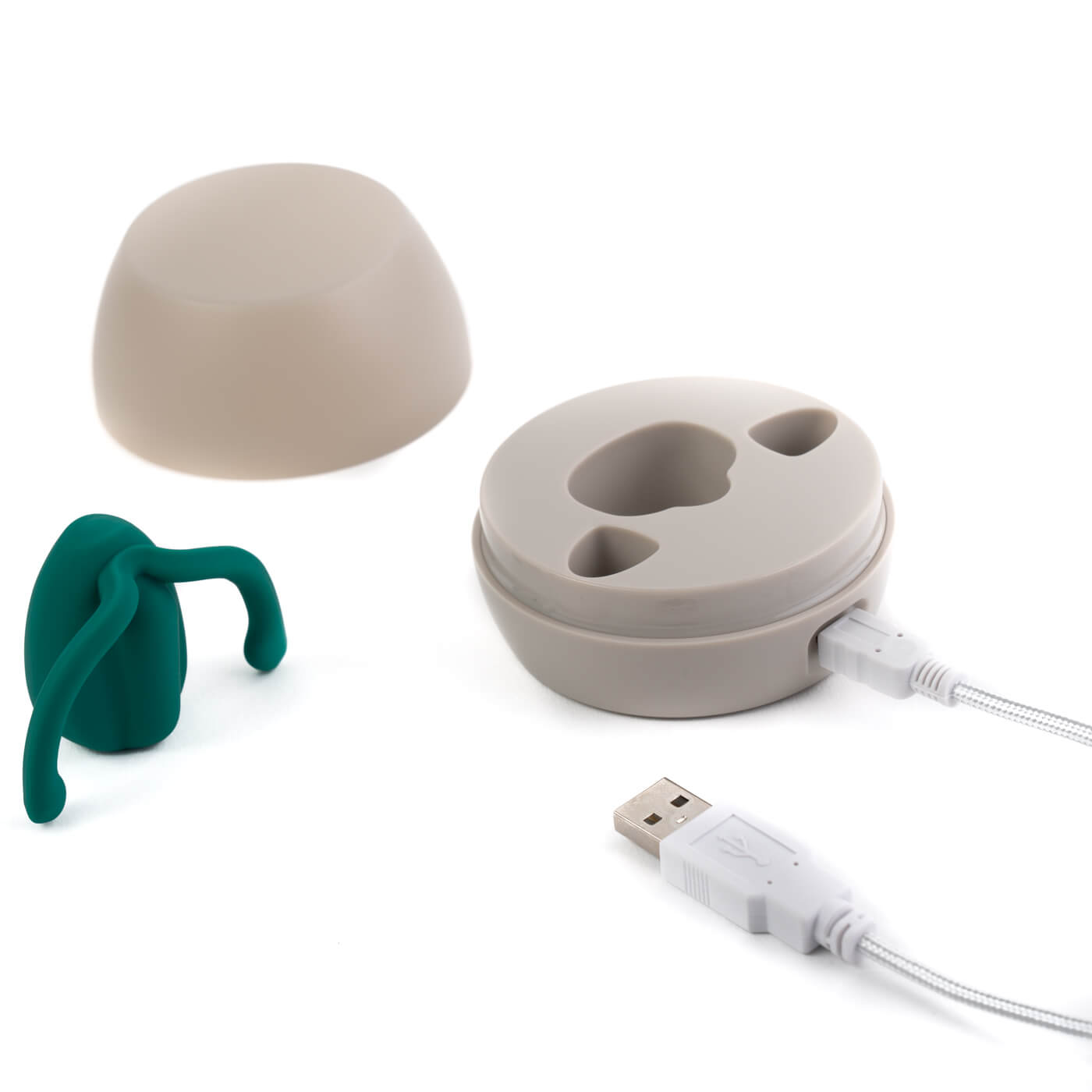 - Rechargeable vibrator - comes with a handy plug-in charging base that can be used as a traveling or storage case