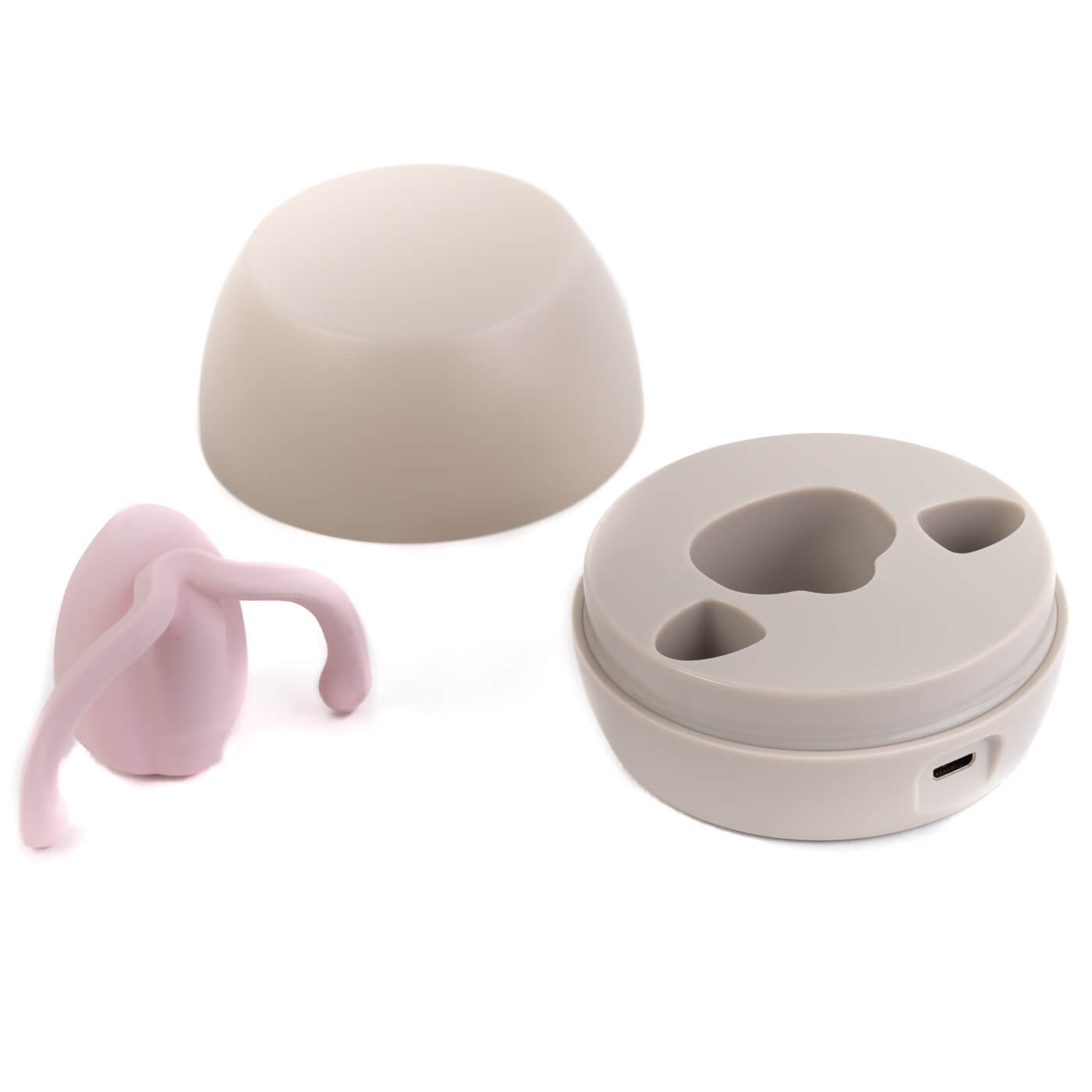 The Eva II is rechargeable and comes with a charging base that also doubles as a travel/storage case.