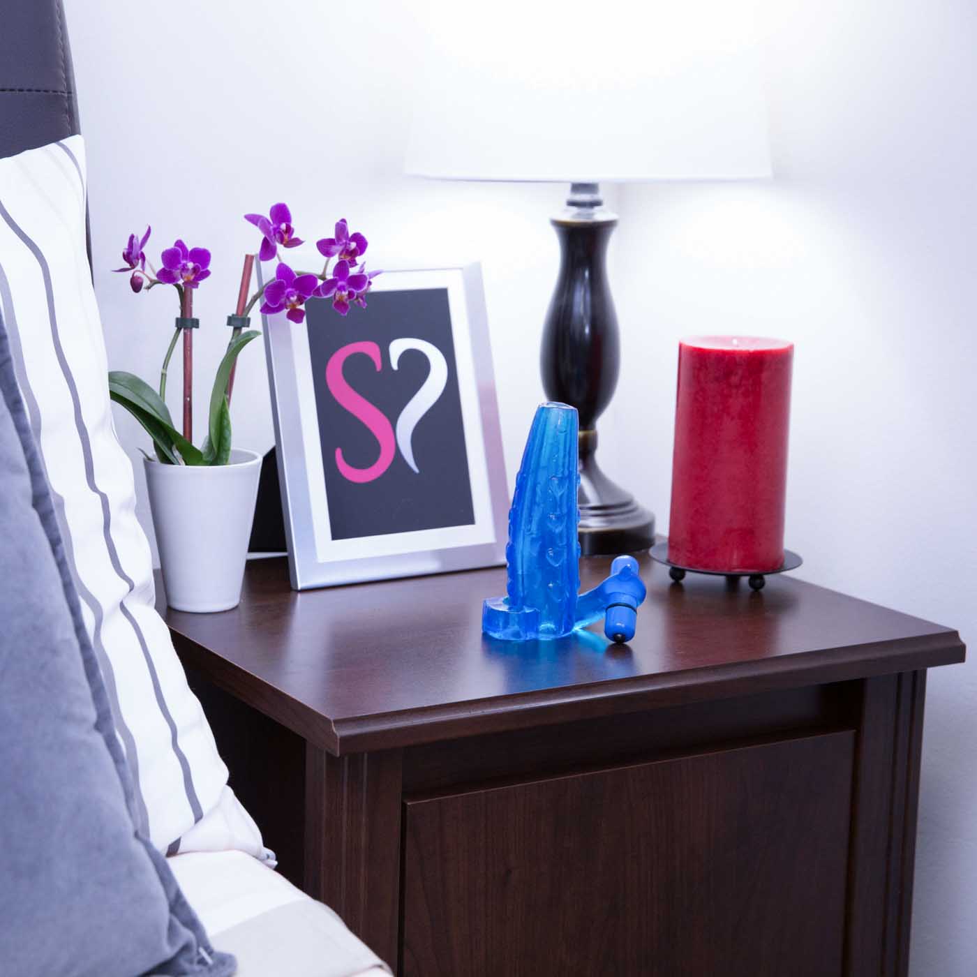 On top of the sleeve are ribbed nubs and a powerful cordless micro vibrator, with a tiny clitoral stimulator that tantalizes your lover's sweet spot.