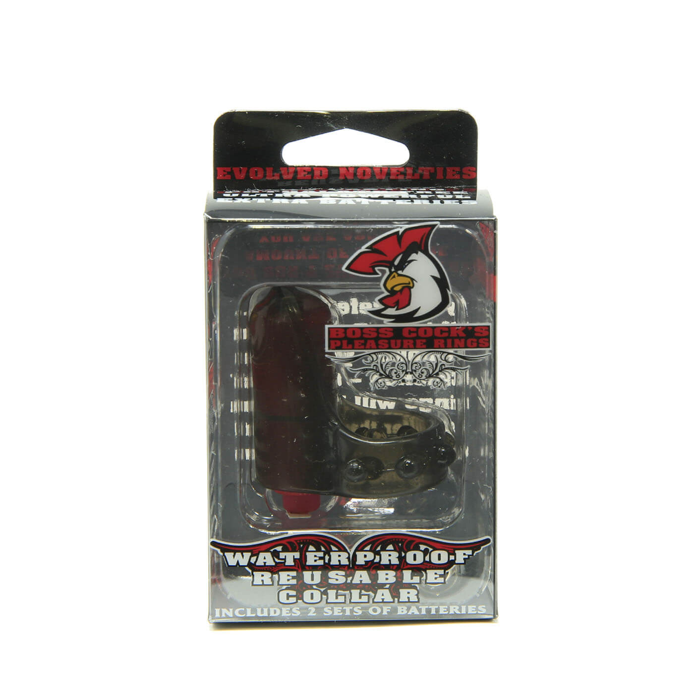 The Boss Cock's Collar Vibrating Pleasure Ring includes two LR41 batteries and comes in a romantic and edgy red and black color. This set also includes bonus batteries so you can keep the fun going.