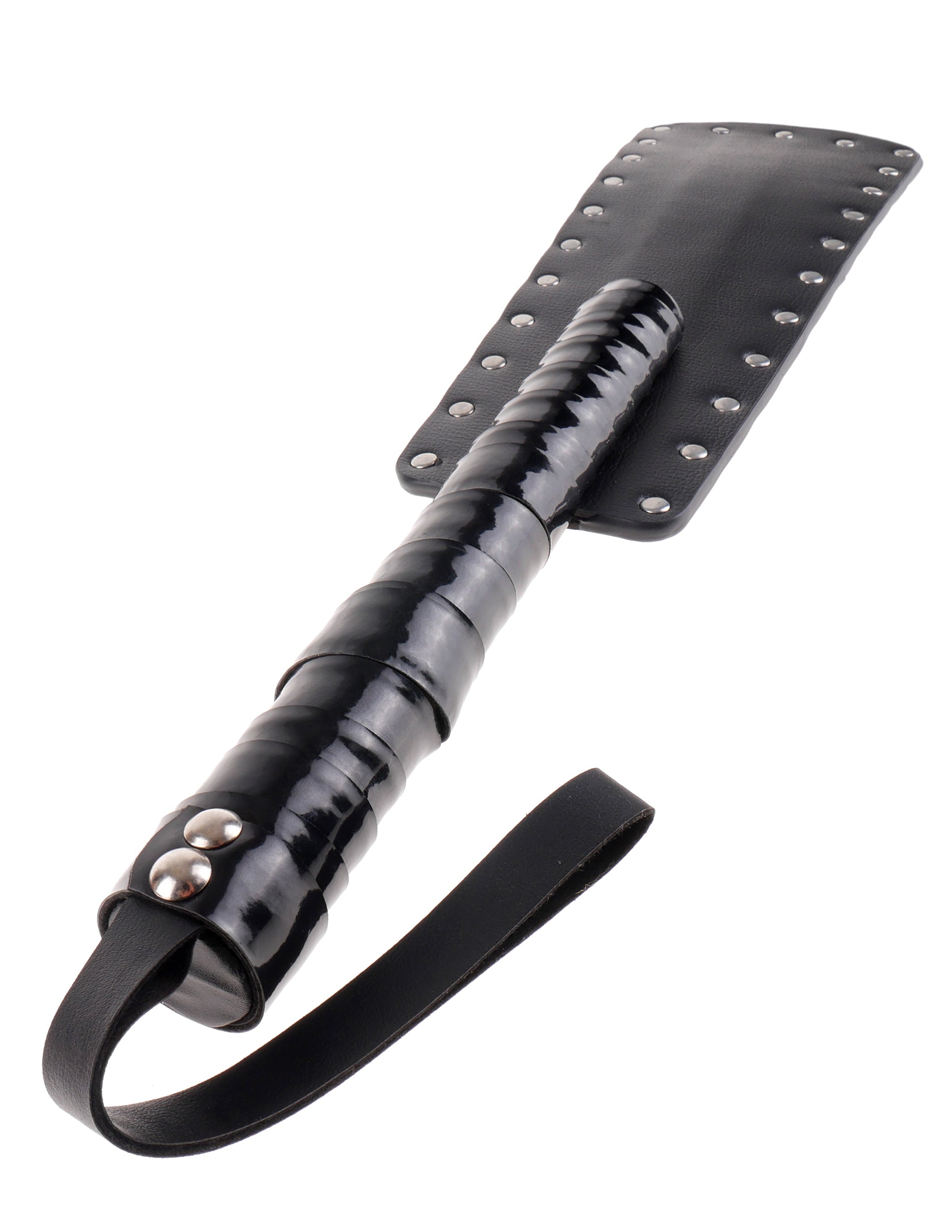 It takes just one crack of this firm Punisher Paddle for your submissive to know who's in charge. This heavy-duty paddle provides serious playtime punishment with every swing, while the hardcore metal studs are sure to leave a sensual sting. Something this bad has never hurt so good! Length: 20" (50.8 cm) Width: 5" (12.7 cm)
