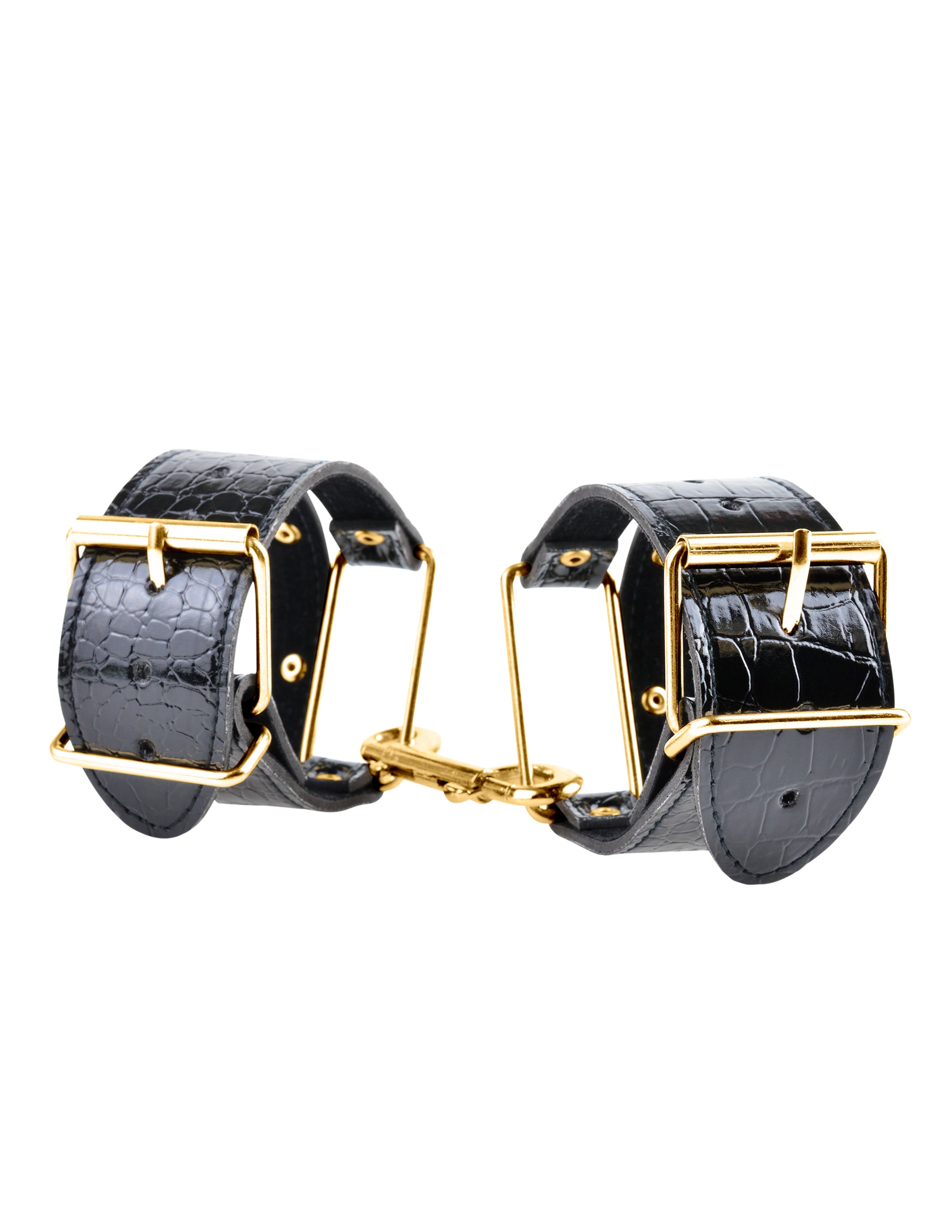 Secure your lover with these luxurious Fetish Fantasy Gold cuffs. Perfect for restraining either wrists or ankles, these elegant cuffs feature soft plush lining and a fully adjustable buckle strap to snugly fit most sizes. Made to play hard, the cuffs connect with heavy-duty hardware and a spring-loaded metal clip to ensure your lover won't escape any time soon. Fetish Fantasy Gold is an exquisite new collection of premium fetish must-haves developed for fashion-forward couples. This contemporary line of bold new bondage essentials feature distinctive designs, sophisticated styling, and custom concepts created to excite and incite the modern fetish connoisseur.