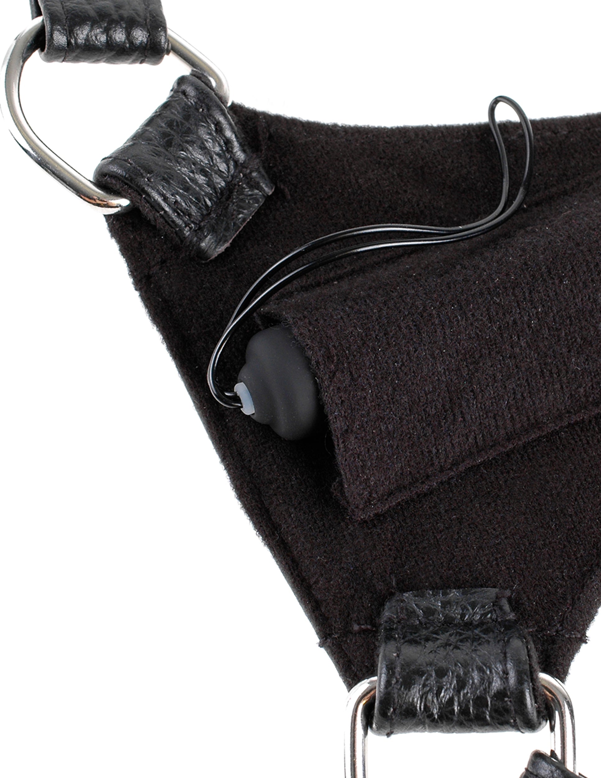 When you're looking for an affordable strap-on harness that can do it all, the Fetish Fantasy Series harnesses are just what you need to get the job done. We've reimagined our best-selling harness designs, improving them with even better shapes and materials to offer the best range of harnesses for beginners and strap-on aficionados alike. Compatible with most dildos, these harnesses perform best with Pipedream's Fetish Fantasy Elite Suction-Cup Dildos and Basix Suction-Cup Dildos. This multi-purpose Remote Control Fantasy Harness features a 20-function wireless remote controlled vibrating bullet that hides discreetly within a lining pocket, offering incredible clitoral stimulation for the wearer with every passionate thrust! Made with heavy-duty genuine cowhide leather and a soft polyester lining, these exceptional materials prevent chafing and feel great against the skin. The low-rise fit is super flattering and comfortable, while the 4-way adjustable straps feature sturdy metal D-Rings to securely fit hips up to 60-inches (152 cm). Three metal snaps secure the metal O-Ring and hold everything in place even when the action heats up. The three included silicone O-Rings allow you to interchange a range of dildos with a diameter up to 2-inches (5 cm). FOR BEST RESULTS: Remove the (3) LR44/AG13 batteries from the bullet in between uses, before cleaning and when stowing away.