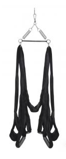 Swing into difficult sexual positions you never imagined with the world's first ever Yoga Sex Swing. With the aid of the Yoga Sex Swing, you can defy the laws of gravity and enjoy sexual positions you never thought were possible, without special strength, balance or agility. The versatile swing allows you to move into a range of yoga positions both in the horizontal and vertical planes, strengthening and stretching virtually every muscle in the body required for amazing sex. The Yoga Sex Swing improves flexibility, increases stamina, builds core muscles and gets you in shape for satisfying sex. Now, ordinary couples can use yoga to perform the most difficult, most stimulating sexual positions ever imagined—and reap the benefits and pleasures they arouse! Enjoy weightless sex in unlimited positions and explore your deepest fantasies. Try new sexual positions that would normally require tremendous exertion and skill, and execute them with ease! You and your lover will be amazed how easy it really is to find the optimum angle to achieve deep penetration with minimal exertion. Sex in these challenging positions has never felt so good—and never been so effortless! For the ultimate comfort and enjoyment, swing into action and let your imagination run wild! The swing is easy to assemble and installs in minutes in your ceiling, using only a few common tools. The soft, plush nylon fabric feels great against your skin and holds up to 300 lbs. The padded foam handles provide extra comfort and added support, while the heavy-duty iron frame holds everything together. Includes: Heavy-Duty Steel Eyelet Bolt Metal Support Bar with 2 Torsion Springs 7 Soft Fabric Supports Swivel Clip Instruction Sheet Free Satin Love Mask