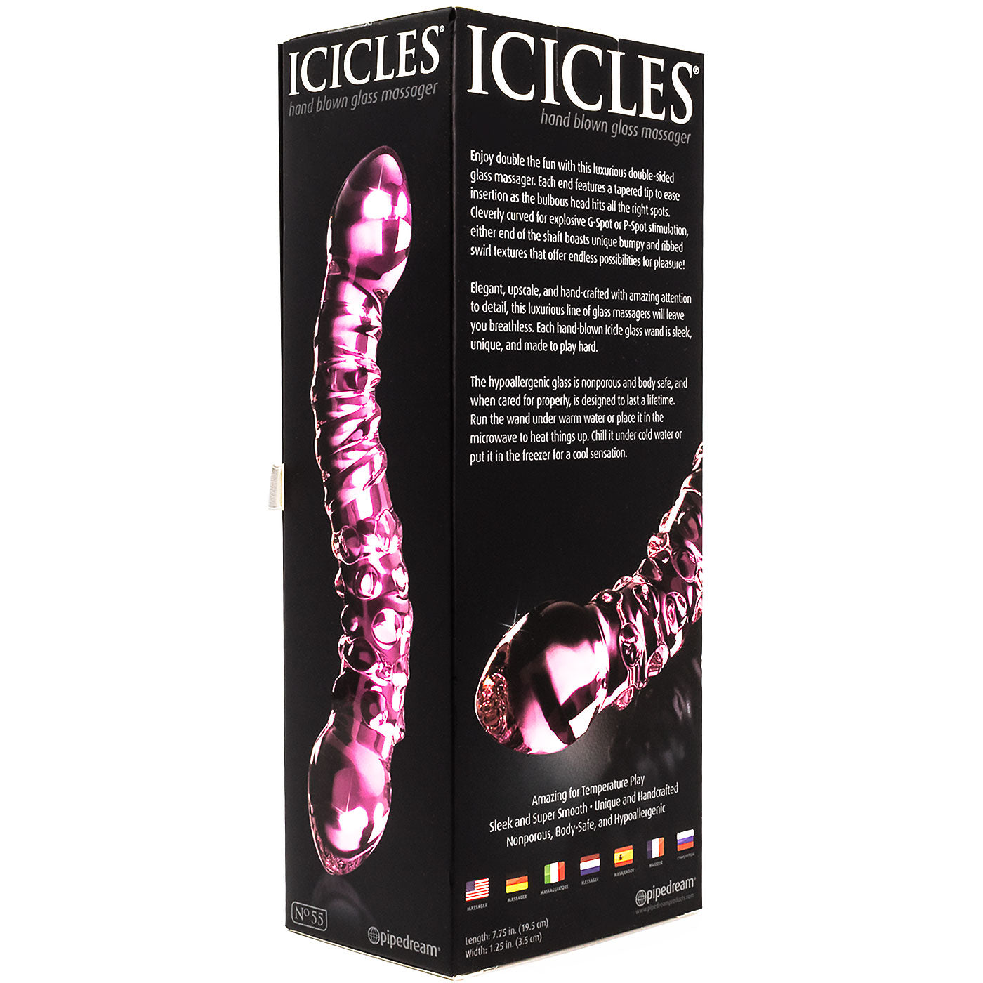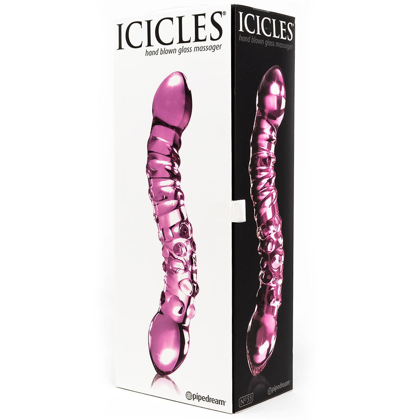 The Icicles No. 55 curves into a slight "S" shape and is designed to massage your hidden hotspot. You'll love the sensational stroking you'll get from this glass dildo!