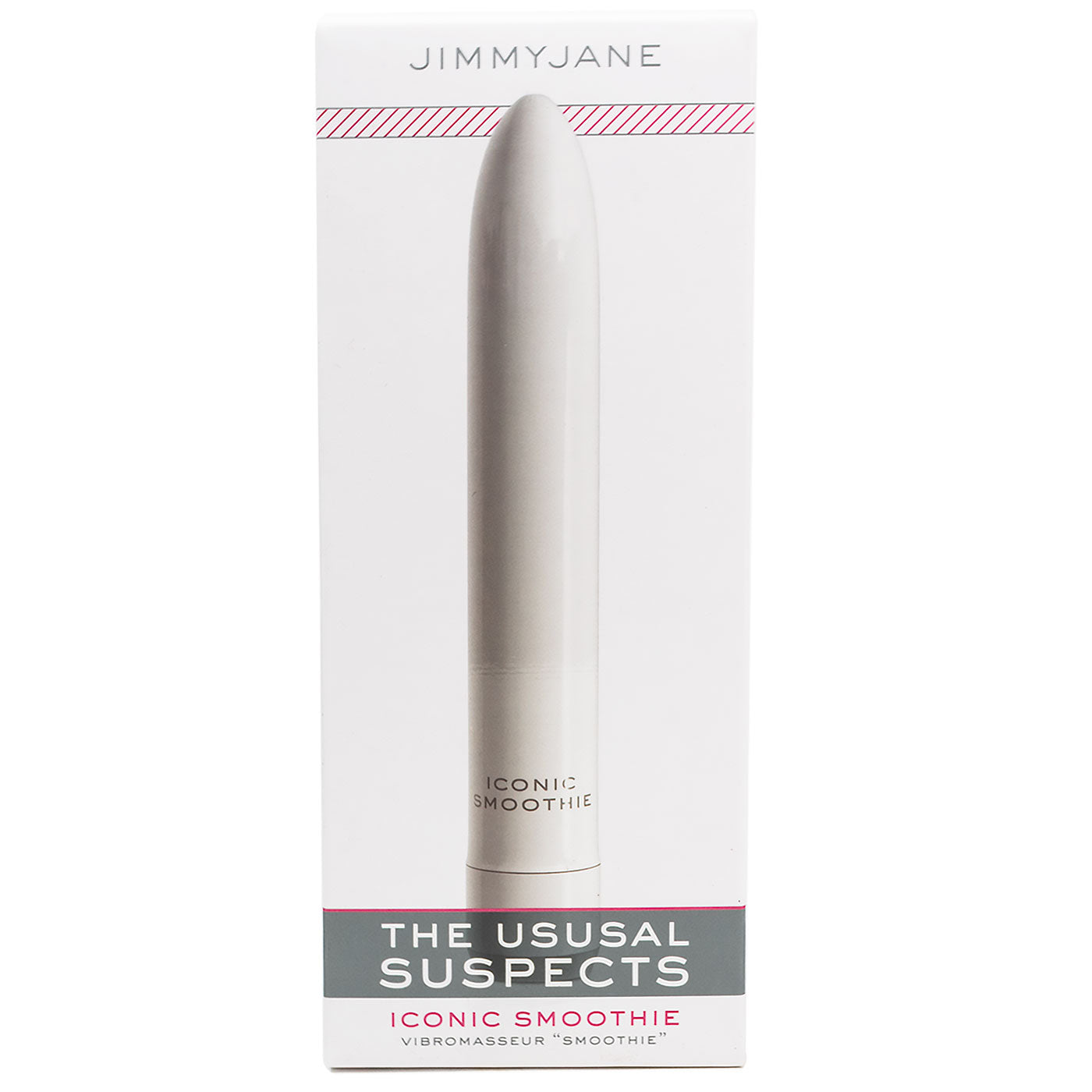 Jimmyjane's Usual Suspects line transforms the basic into extraordinary with this sleek, ultra smooth, breathtakingly versatile vibe in pure white. Presenting a complete classic pared down to its basic pleasure essentials, meet the Iconic Smoothie Vibrator! This classic vibrator is ideal for beginners and comes with exciting vibration modes for you to experiment with.