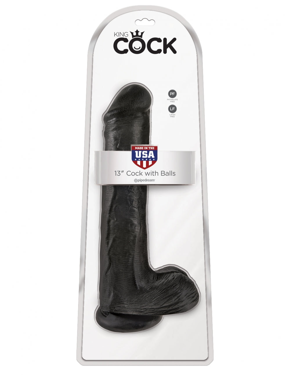Do you want your first dildo to look and feel just like the rock-hard stud you’ve always fantasized about? Stop dreaming and get down with the King! Every vein, every shaft, and every head is carefully handcrafted with exquisite detail to give you the most realistic experience ever imagined. The powerful suction cup base sticks to nearly any flat surface and makes every dildo harness compatible. Made in Pipedream’s state-of-the-art rubber manufacturing facility, every King Cock is phthalate-free, latex-free, body-safe, and hypoallergenic. Best of all, King Cock is proudly made in the USA so you can enjoy every masterpiece with confidence. Length: 13" (33 cm) Width: 2.75" (7 cm)