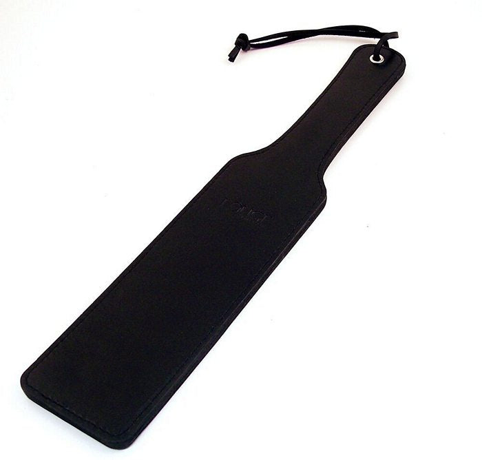 Long Paddle Black from Rouge Garments. Long Paddle is a double sided leather spanking paddle. 16.5 inches long and 3 inches wide. The paddle is made of 100% genuine leather. Comes with leather strap handle to go around the wrist for control of the spank. This Spank paddle will implements a print on the buttocks of the receiver.