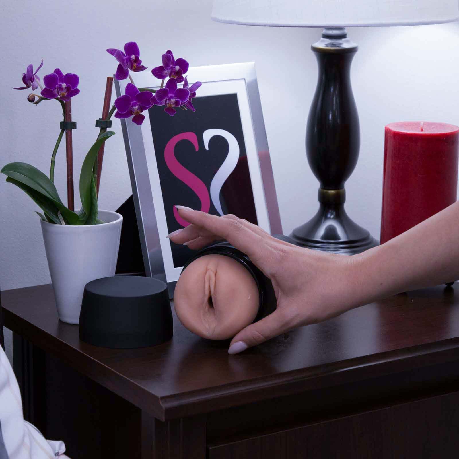Main Squeeze Jessie Andrews Pussy stroker. She is always within reach. Doc Johnsons Main Squeeze line of hard case masturbators starring our most popular porn star molds is designed to put the power in your hands, featuring a squeezable grip that lets you vary the tightness of each stroke and a suction adjusting end cap. Molded directly from sexy girl next door Jessie Andrews body, this Ultraskyn stroker looks and feels just like thrusting into her perfect pussy. Each Ultraskyn sleeve features a different textured interior, making your experience as unique as each of our sexy Main Squeeze girls. The double-cap hard shell design doubles as a discreet travel and storage case, keeping your Main Squeeze fresh and ready for whenever the mood strikes.