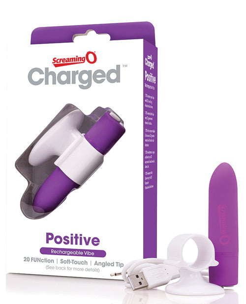 At its highest speed, Charged Positive vibrates for more than 60 minutes and powers back up with a convenient USB connector that plugs in securely and stays put for the duration of the charge - hassle-free charging at its finest! Each unit comes with its own charge cable included accompanied by a convenient charge stand that doubles as a finger cradle. Simply slip Charged Positive through the cradle and position the narrow portion between two fingers - the result is comfortable enjoyment either solo or with a partner.Charged Positive is made of lab-tested, body-safe ABS plastic with a PU coat for a soft-touch surface that glides across your skin. This powerful rechargeable vibrator comes with a 2-year limited warranty for technology you can trust. Color: Grape.