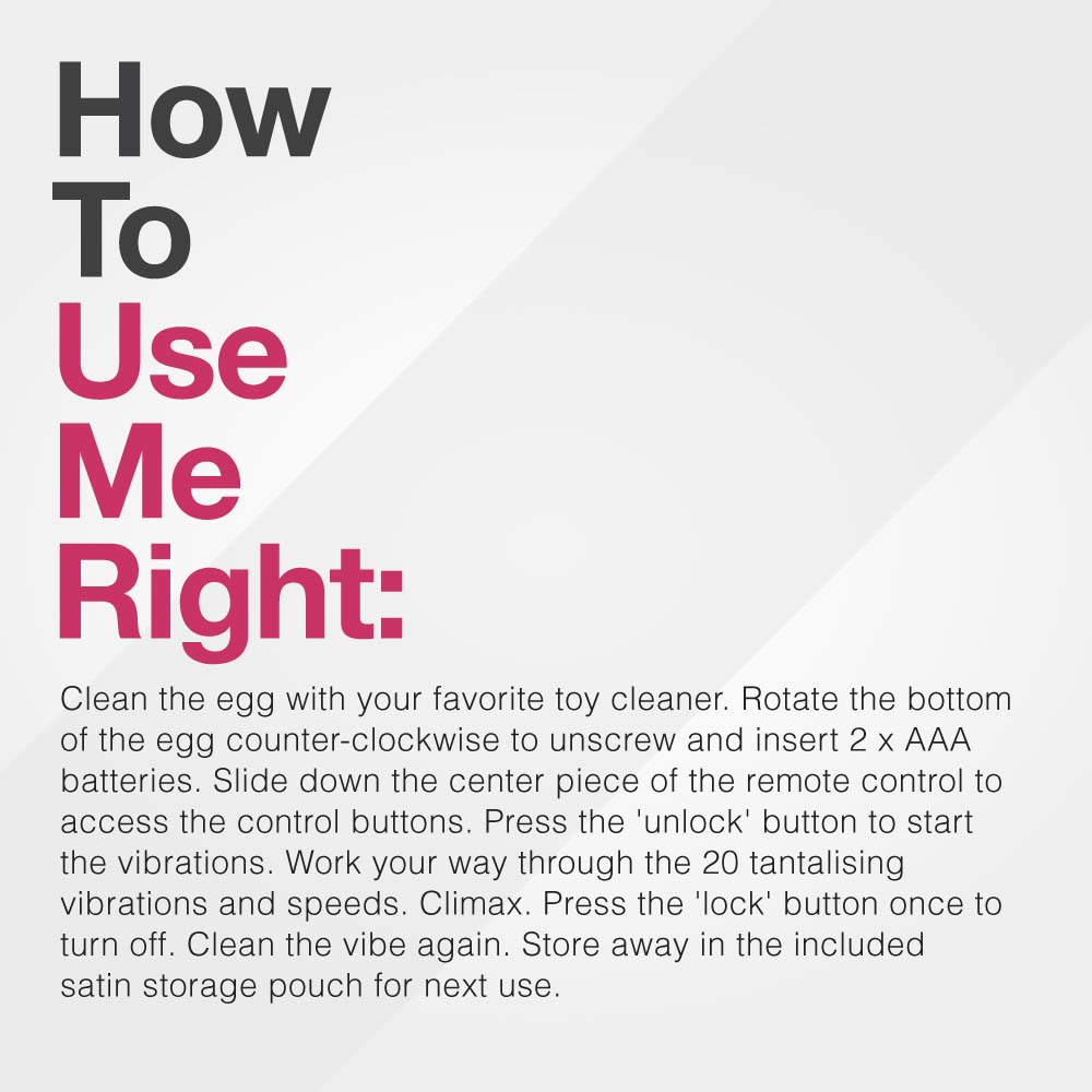 Enjoy the Remote Controlled Egg Vibrator by Simpli Pleasure with a clitoral stimulating gel or long-lasting lubricant for maximum pleasure!