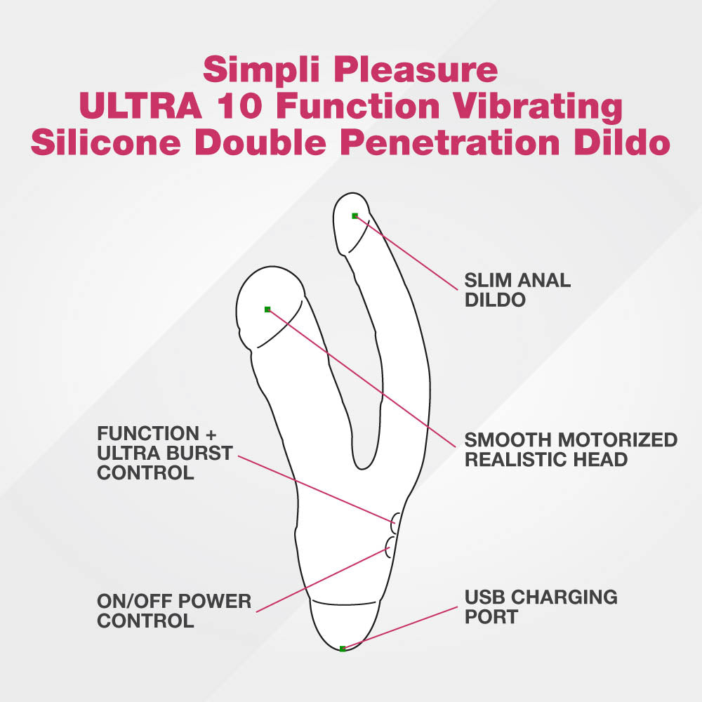 Simpli Pleasure ULTRA 10 Function Vibrating Silicone Double Penetration Dildo