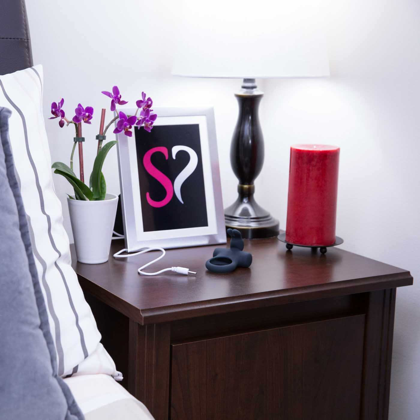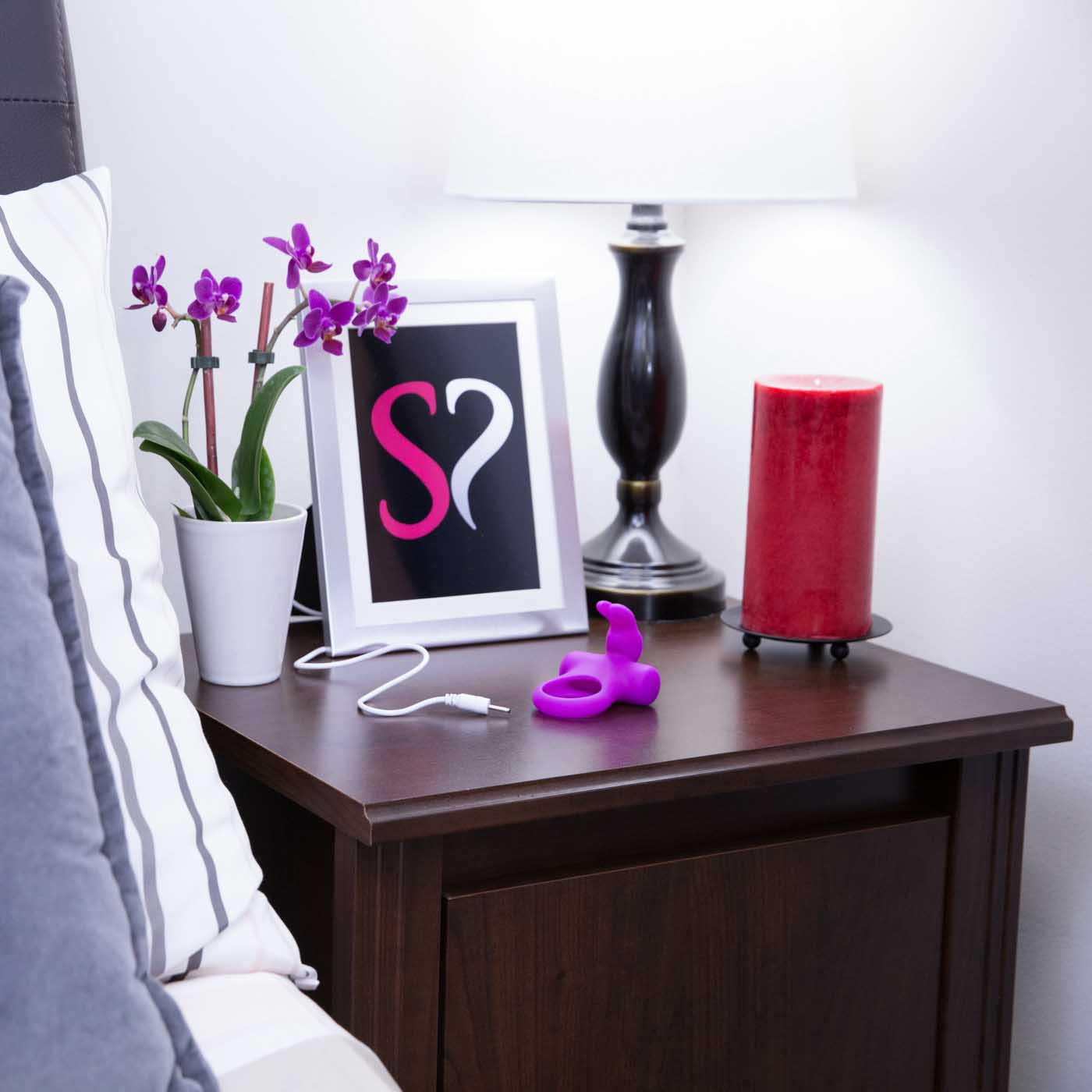 From Ohhh Bunny line Frisky Bunny Vibrating Ring Purple for couple's pleasure. The most pleasure pleasing vibrator ring ever. Rechargeable.Your Bunny can operate for 2 hours when it is fully charged. The charging status will be displayed by the LED signal. 5 vibration modes: The Frisky Bunny has 5 hopping modes with varying speeds, enabling full range of excitements to unlock your most intimate desires. High quality 100% silicone.