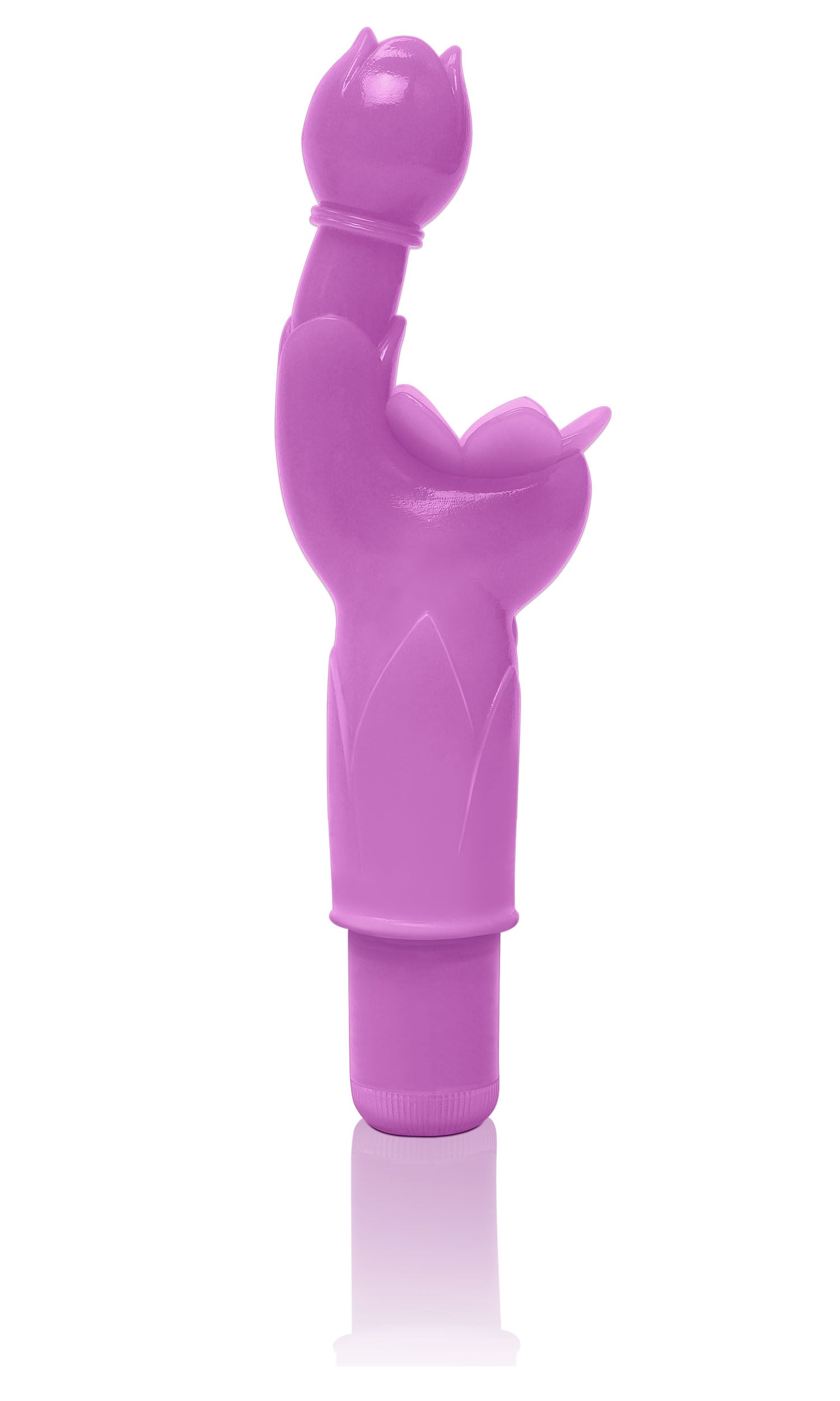 Enjoy pleasure in full bloom with the incredible Dazzling Daisy! This amazing Japanese G-spot vibrator has a cleverly curved tip to reach your special spot with ease, while the fluttering petals tickle, tease and please your clit. Choose a speed on the bottom dial and go from a flutter to a throb in seconds! The soft, hygienic TPE is body-safe and perfect for beginners, while the powerful motor delivers whisper-quiet vibrations where you want them most. Try it in the shower or spa and turn bath time into pleasure time!