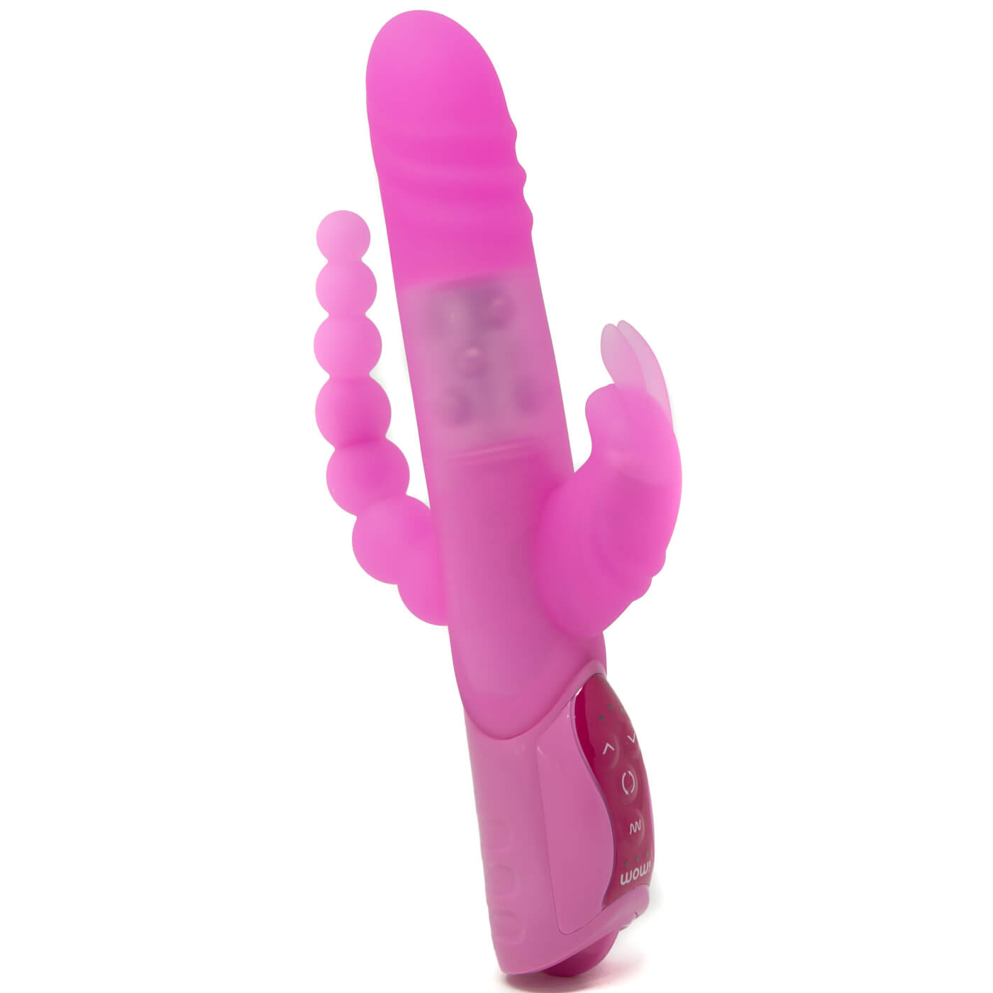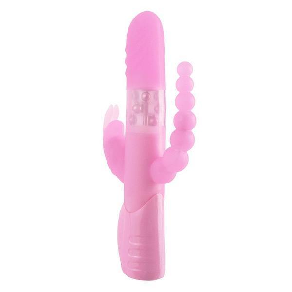The WOW! Total Ecstacy 2 Pink Vibrator features a pair of fluttering rabbit ears for your clitoris, a bendable shaft for your vagina, and a beaded anal teaser for some backdoor fun!