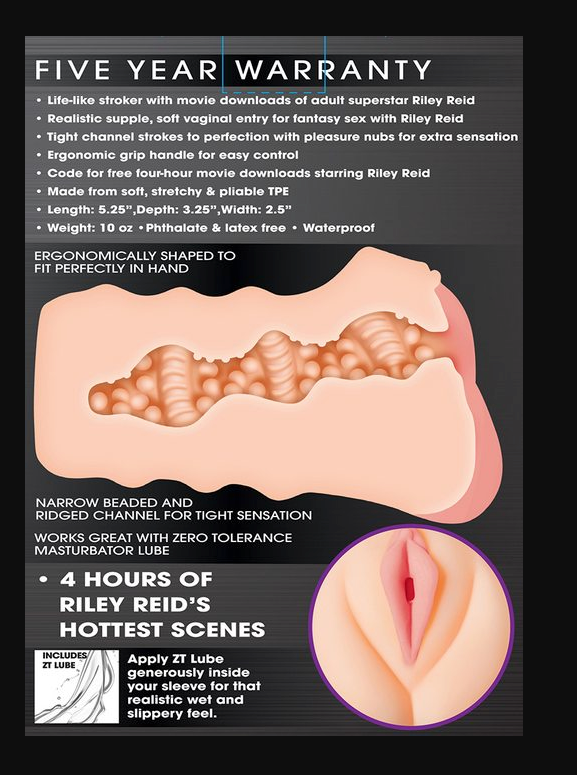 Vagina Stroker Riley Reid from Zero Tolerance Toys. Life like stroker with movie downloads of adult superstar Riley Reid.